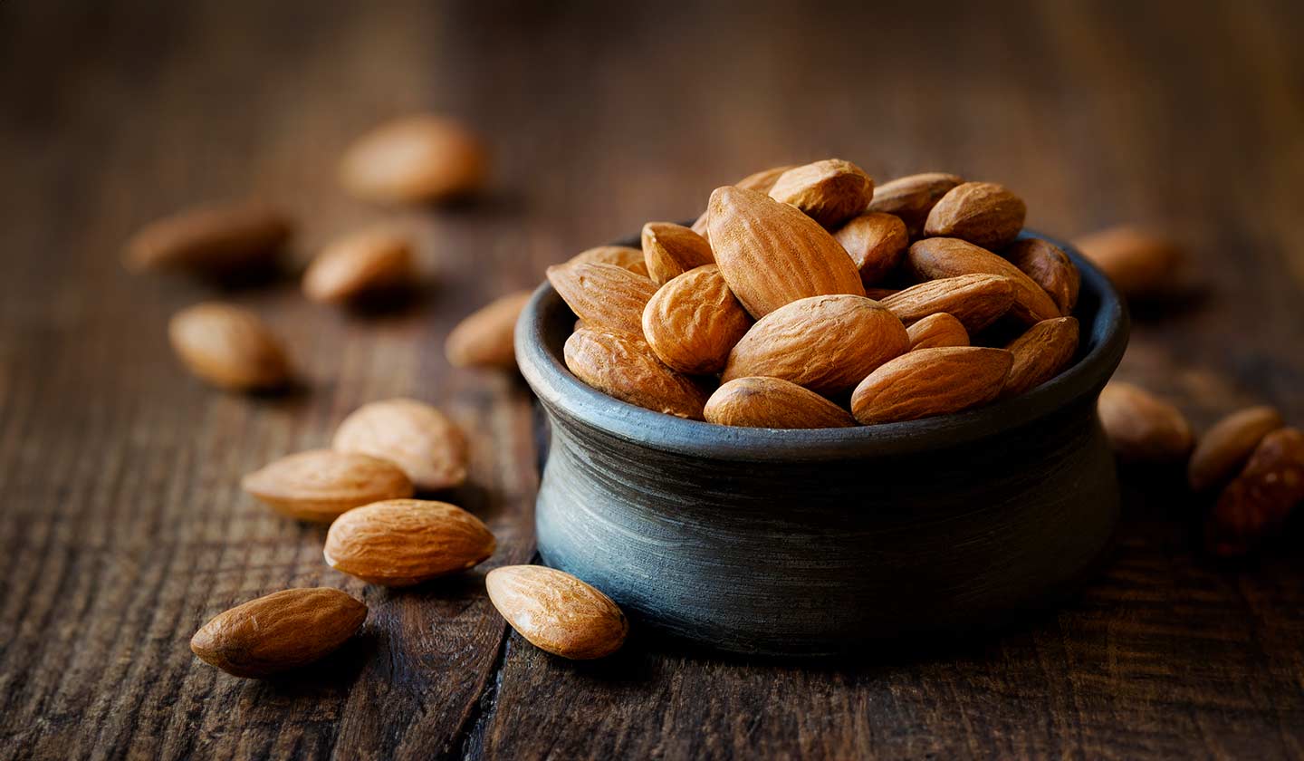 Almonds are a type of nut that is rich in protein and fibre. They are a good source of vitamin E and manganese.